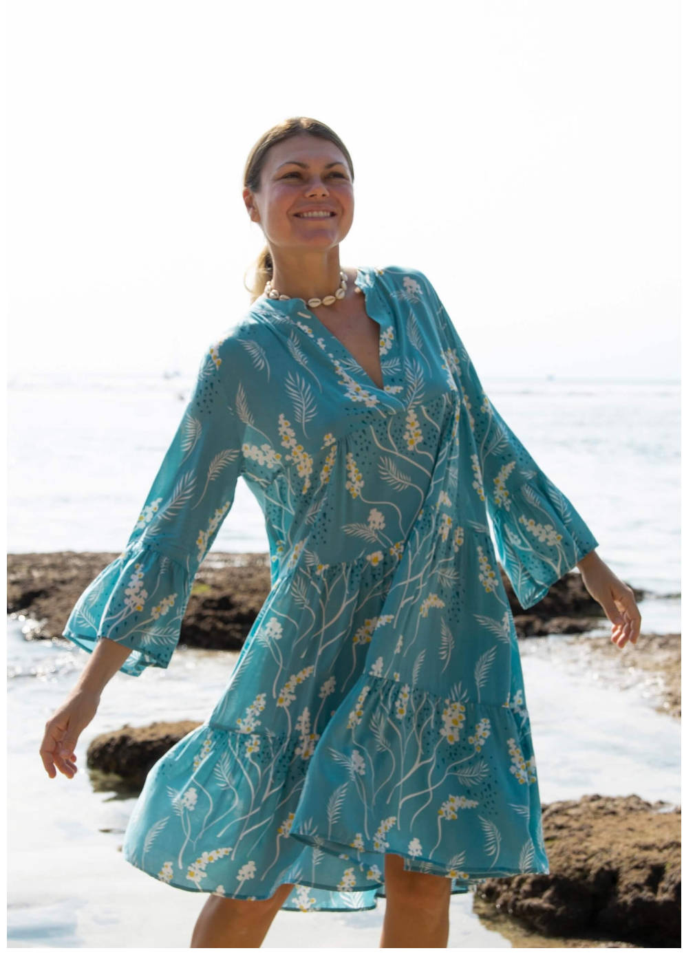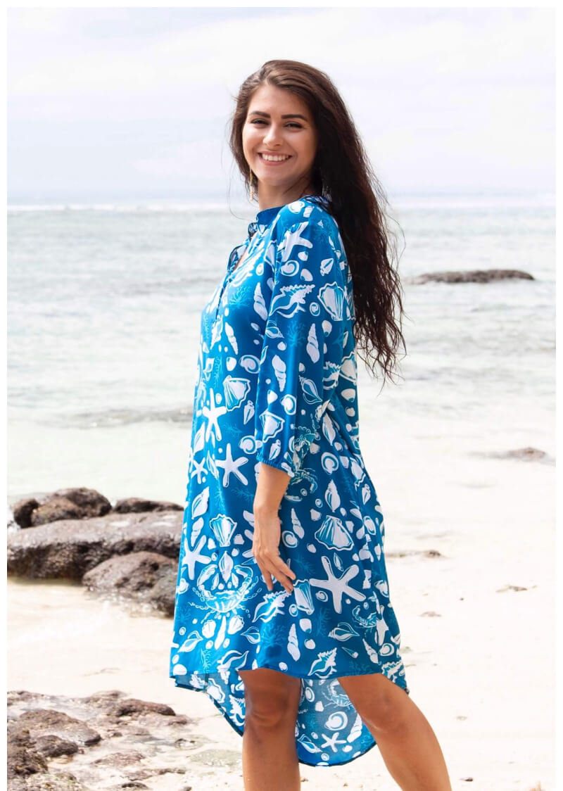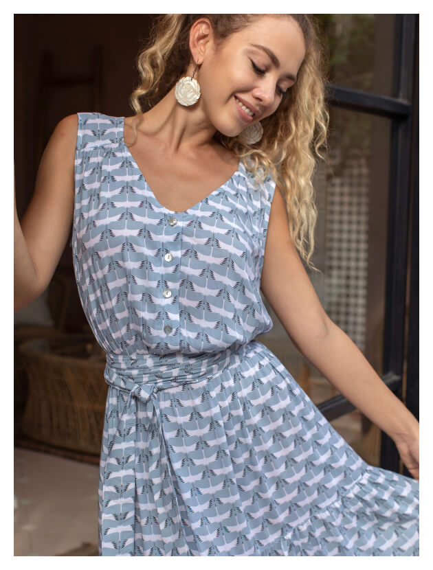 As our customer wrote, «Beautiful, delicate and very slimming dress! Yet it's playful and the sea will love it! Got so many compliments when I wore it!»