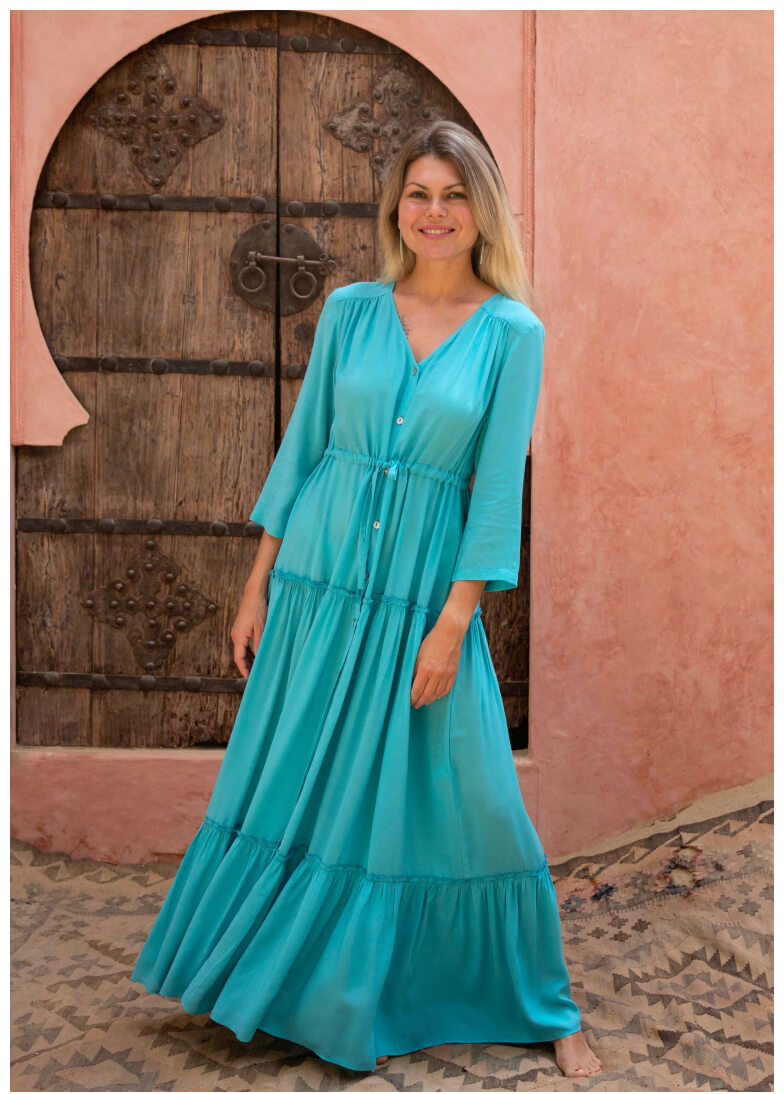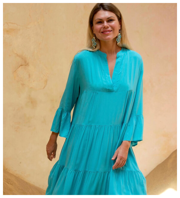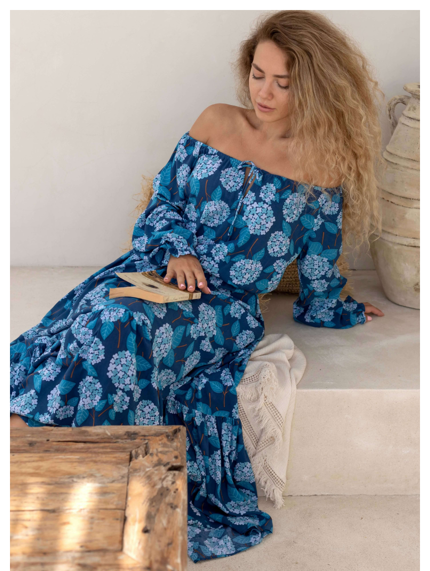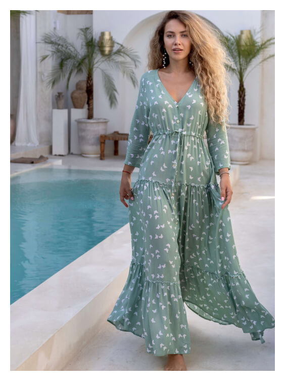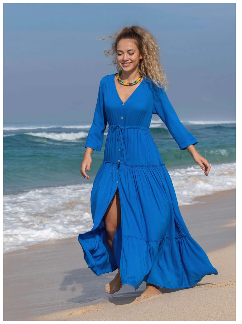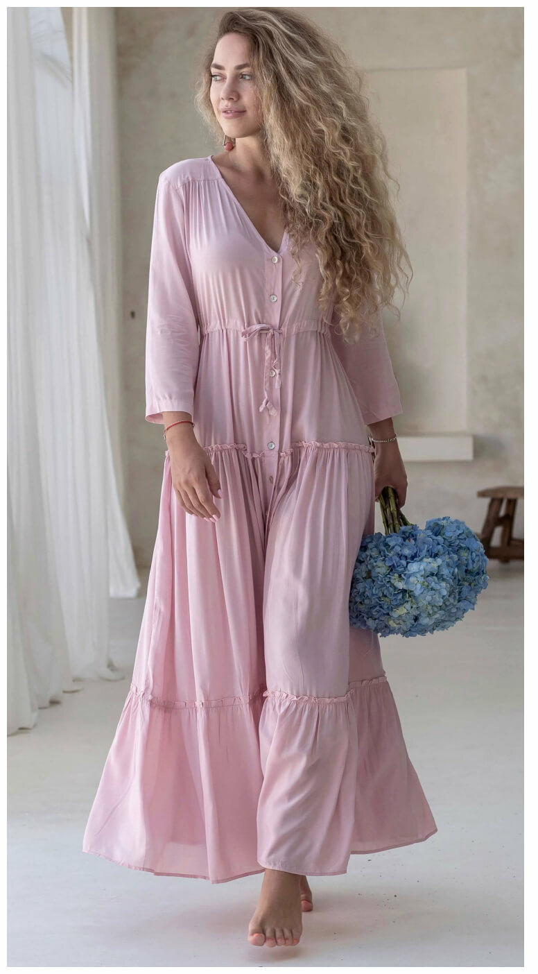 The fabric is so delicate, thin and lightweighted as if it doesn't touch the body. Quite long sleeves will protect from the sun, and at the same time create a feeling of coolness even in the hottest weather. All our customers agreed: this dress is so comfortable that you do not want to take it off.