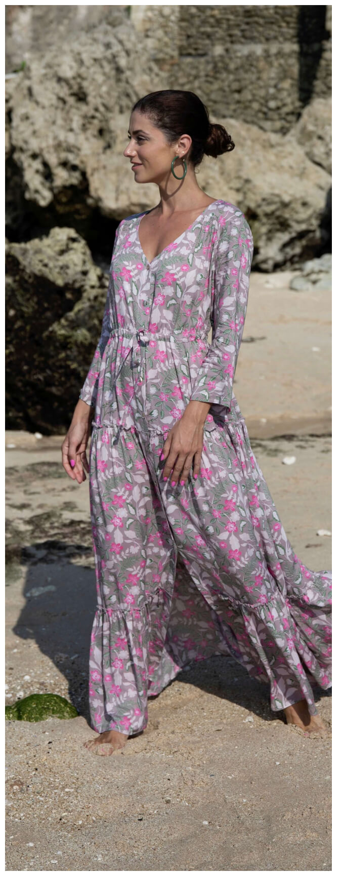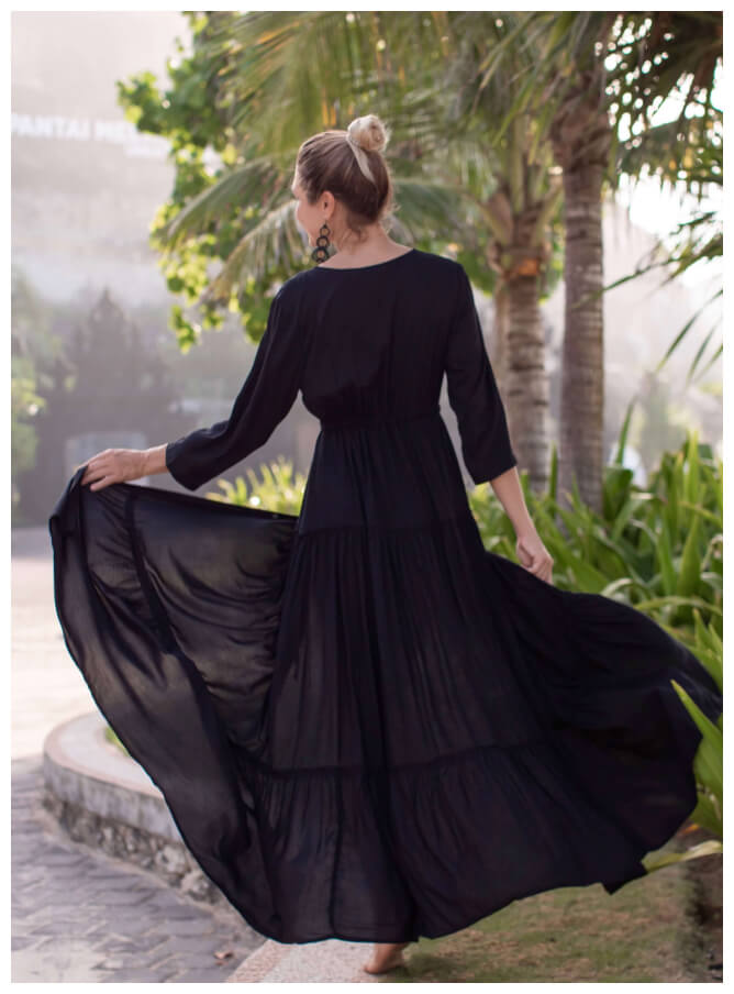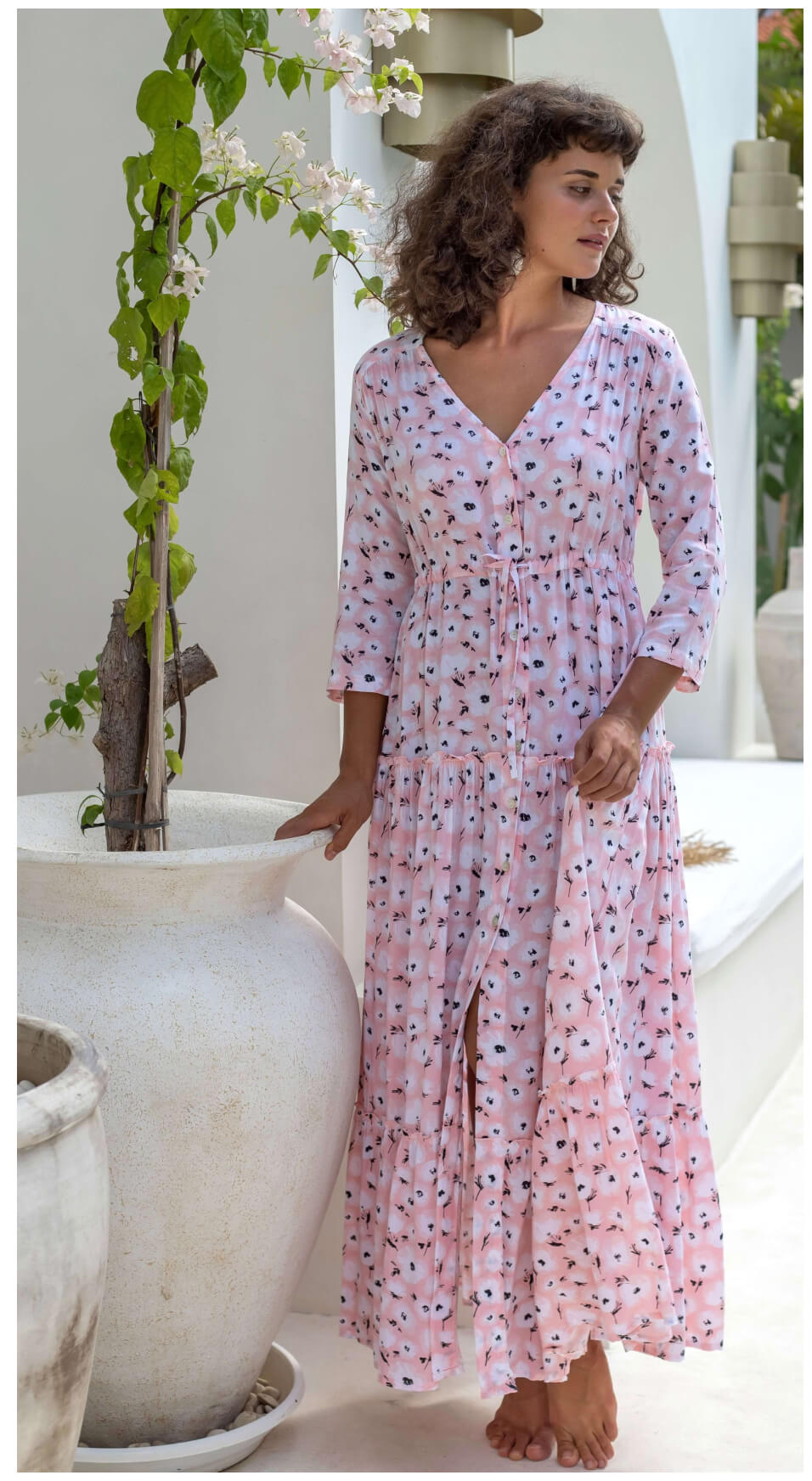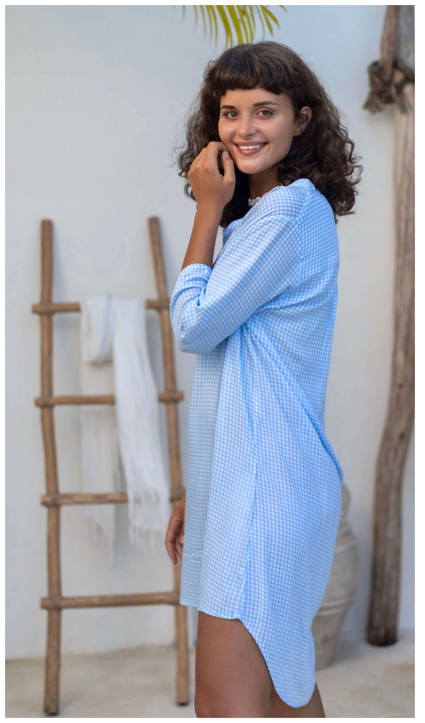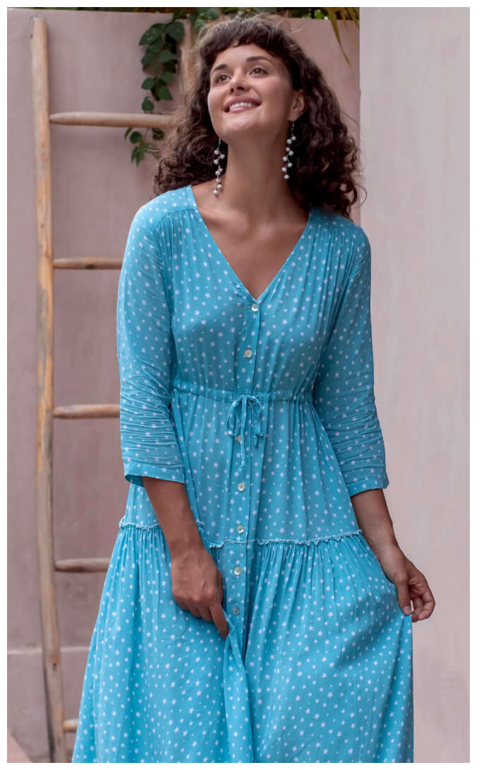The fabric is so delicate, thin and lightweighted as if it doesn't touch the body. Quite long sleeves will protect from the sun, and at the same time create a feeling of coolness even in the hottest weather. All our customers agreed: this dress is so comfortable that you do not want to take it off.