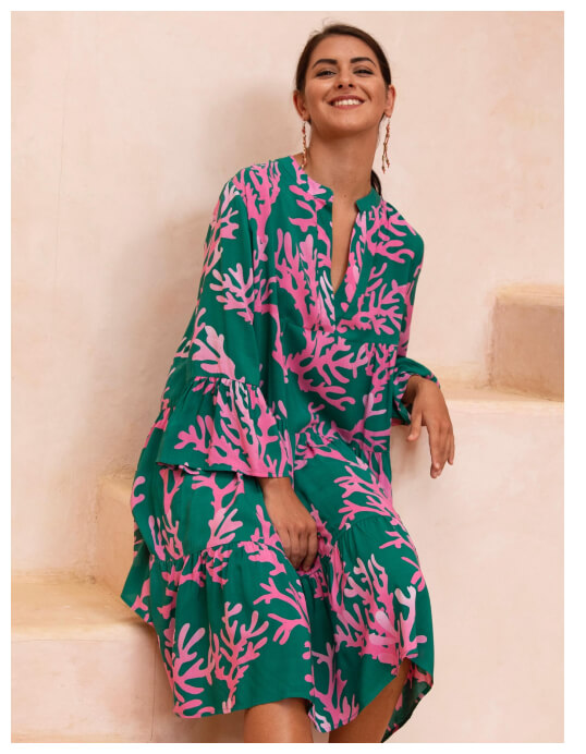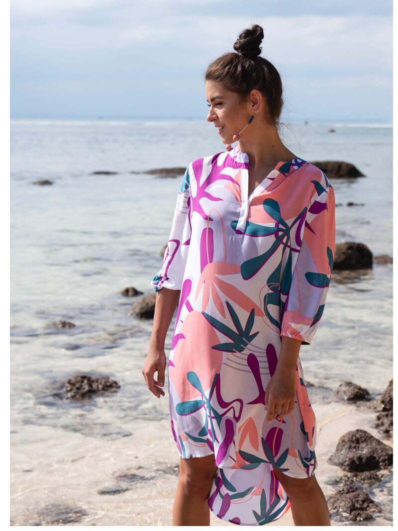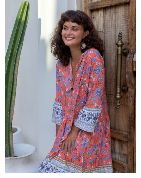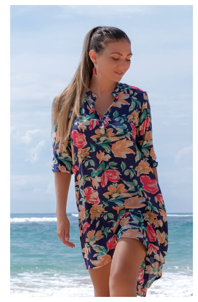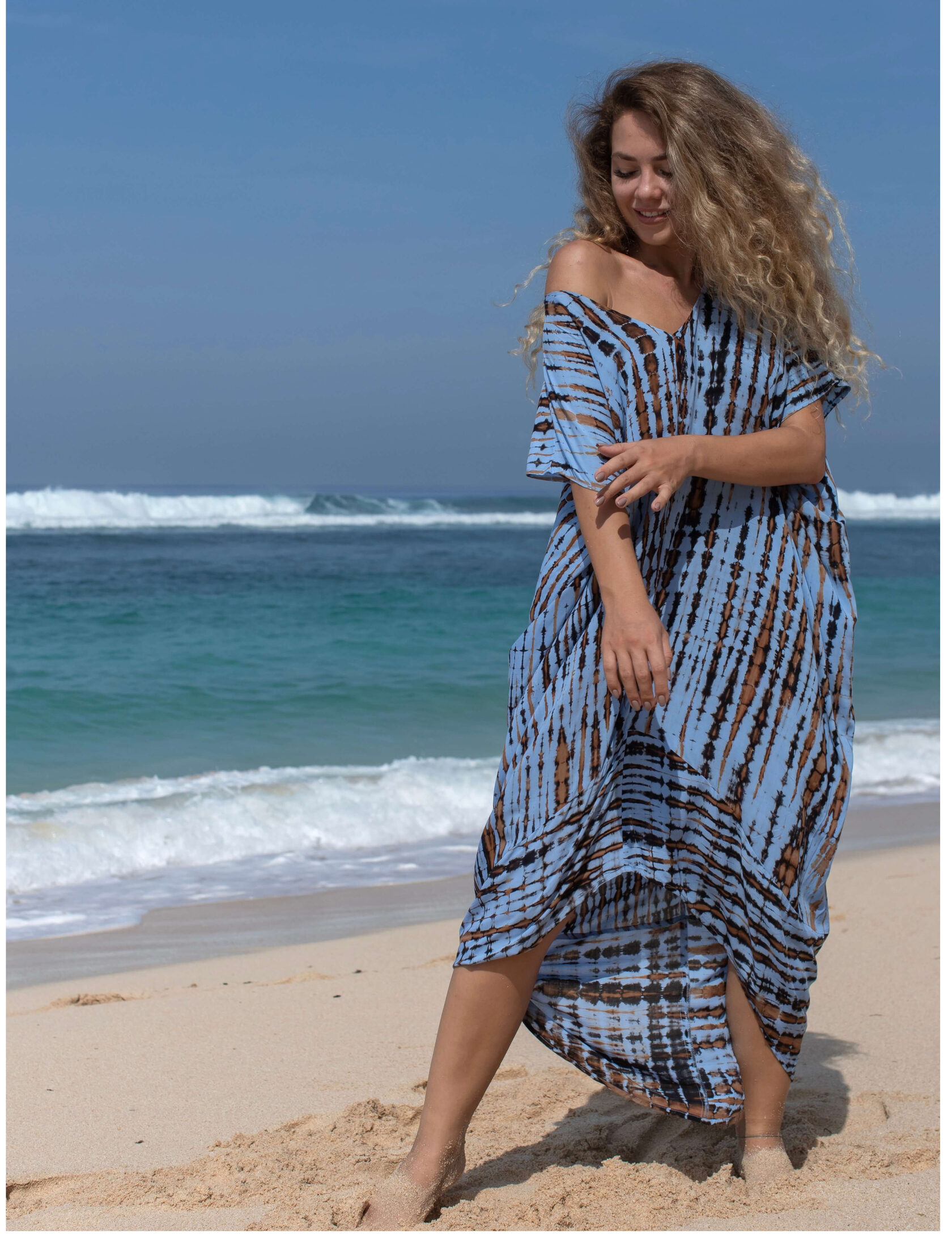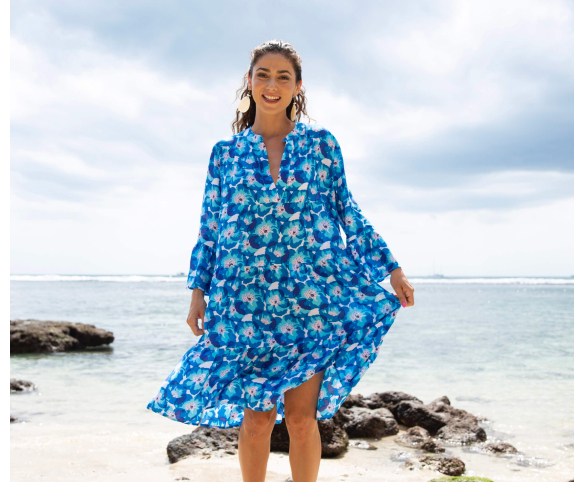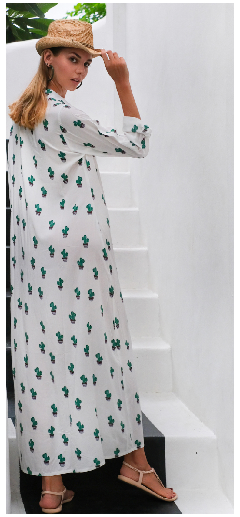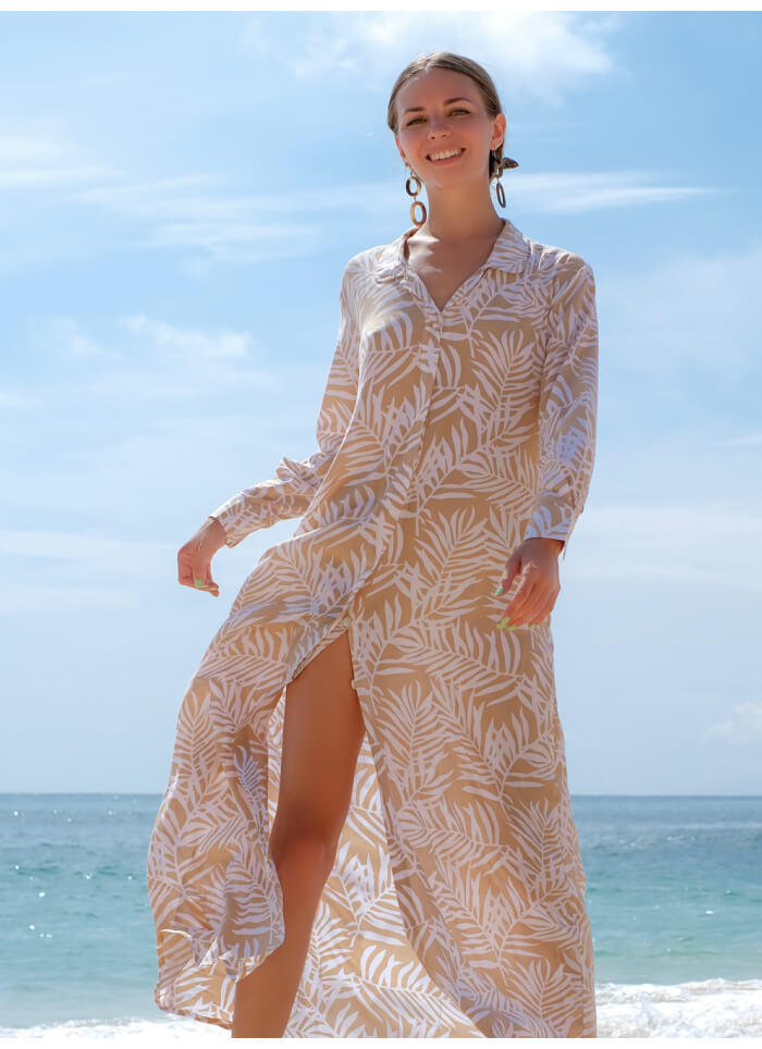"It's not just a beach dress. It's a real skin guard in the heat. I liked it so much that I bought a second dress, even with the same print but in a different color"; "I bought it for my sea vacation . It's a marvelous dress! The fabric is gorgeous, the print is a fire, the length is decent. It's good that it has long sleeves - exactly what I was searching for. It fits perfectly. One of my best recent purchases. Not a single person I passed by remained indifferent.