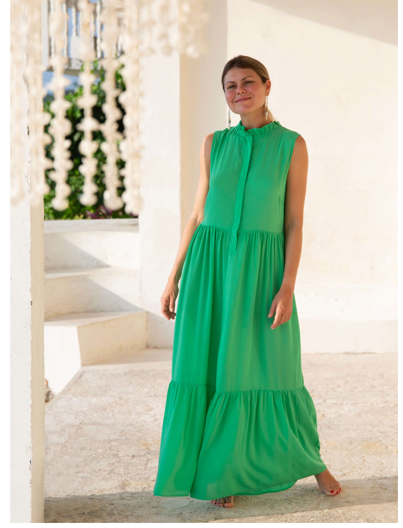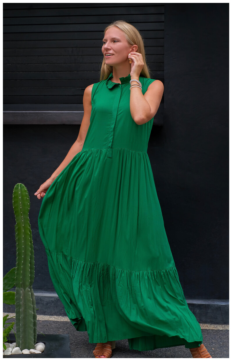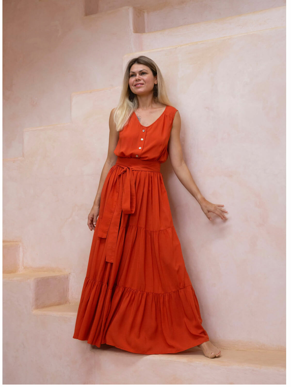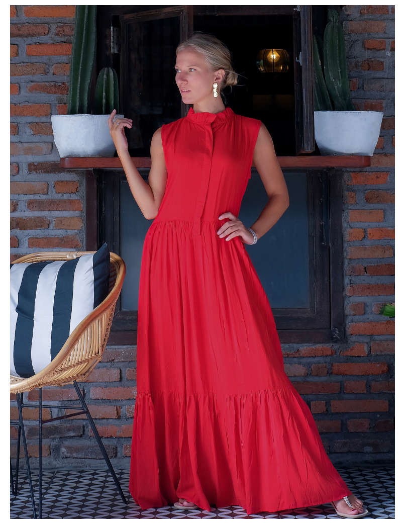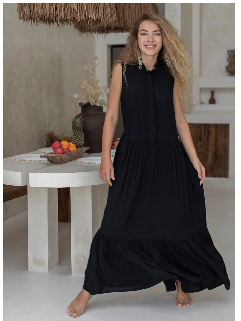 Women are known to have contradictory nature. That's what we thought about when created this dress. Is it possible "to marry" comfort and elegance. And the answer - "Yes!" This long feminine dress with a semi-fitted silhouette on top and a wide, frilly skirt will be one of your summer favorites. We made it in several colors and chose solid colors on purpose - to highlight the beauty of the cut.
