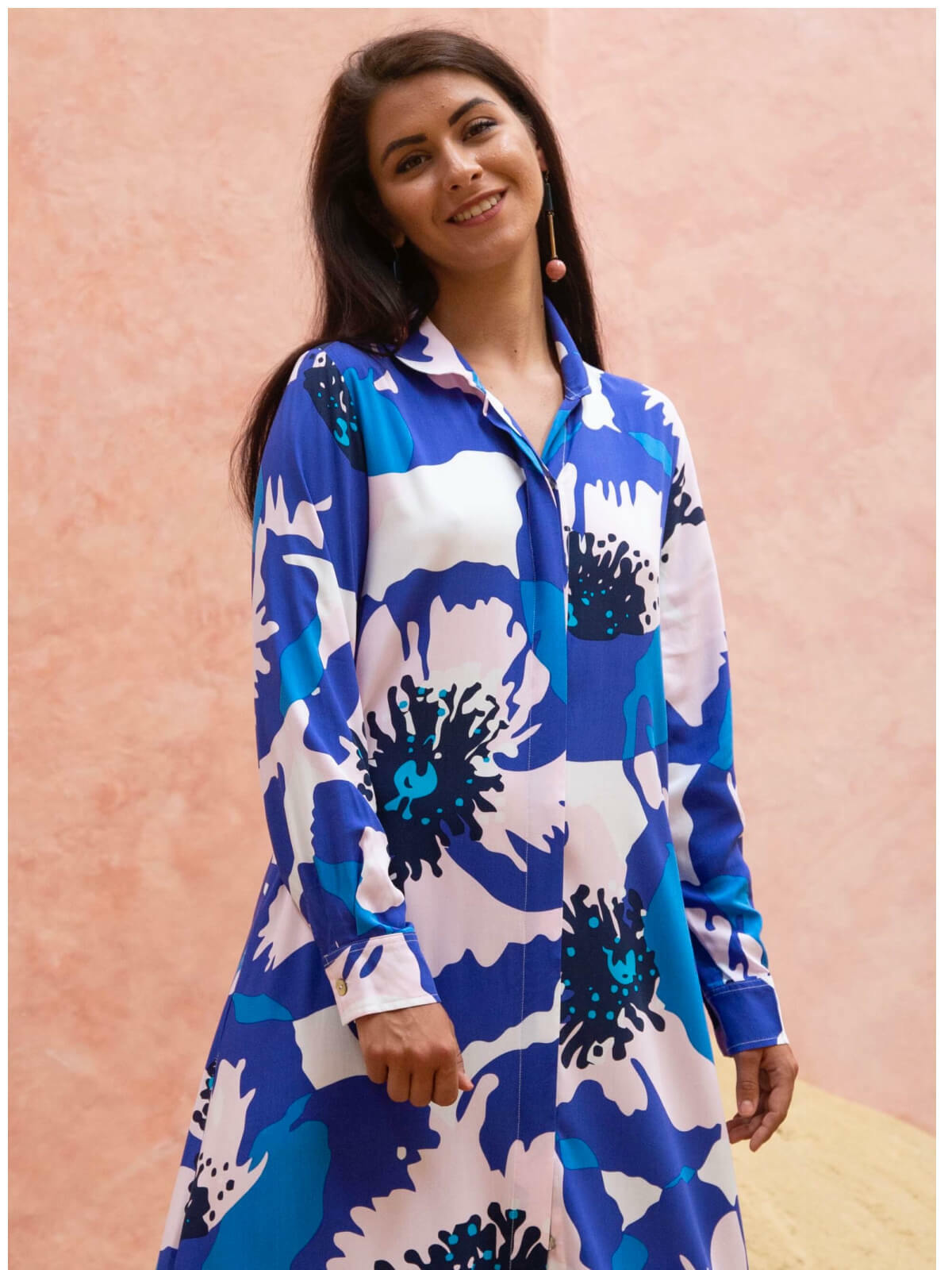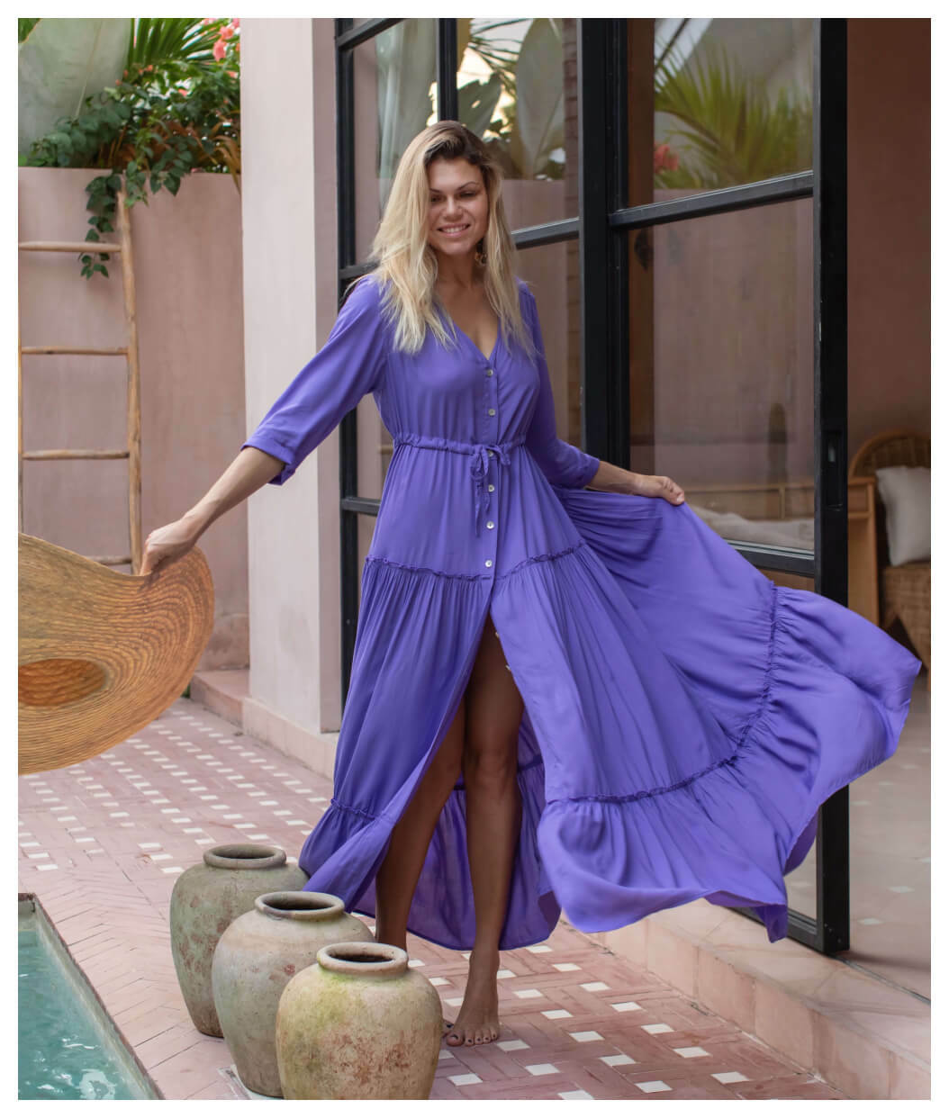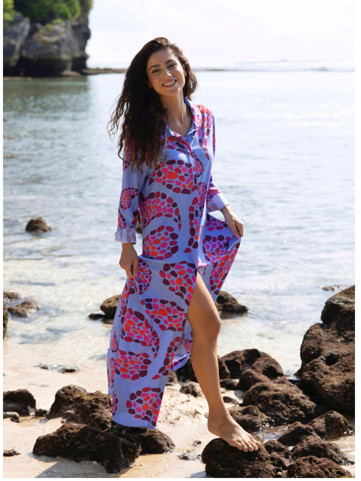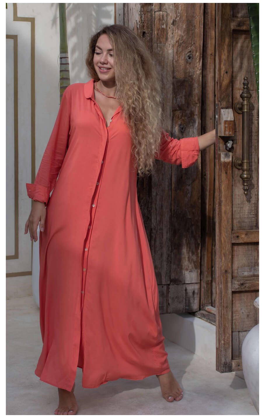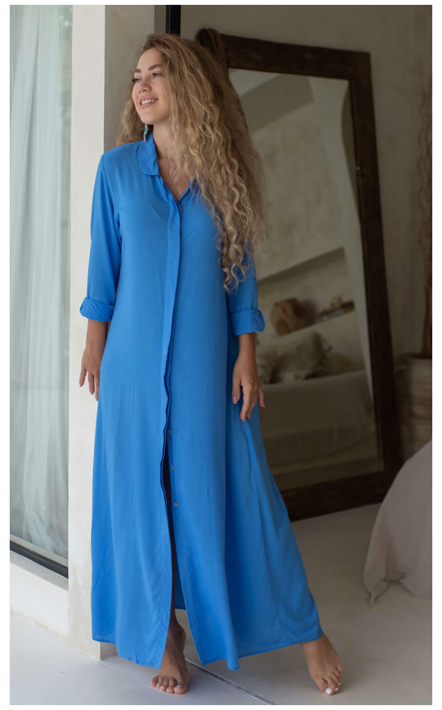 This maxi semi fitted shirt-dress is our hit. The style we replicate in every collection for several years so far is one of our customers' favorites and brings out lots of emotions again and again.