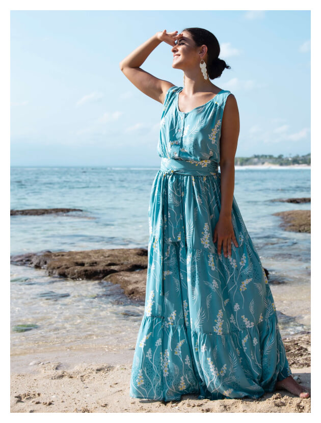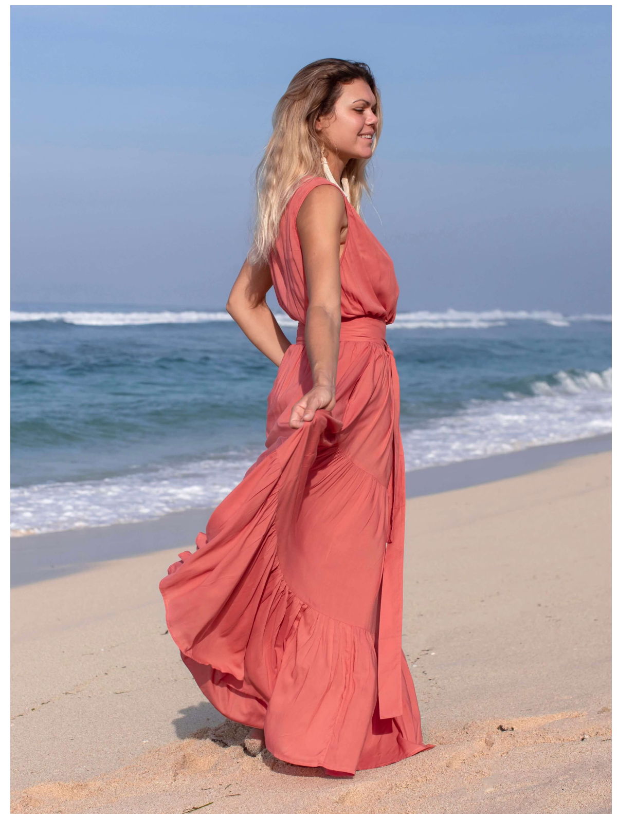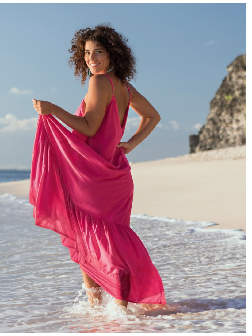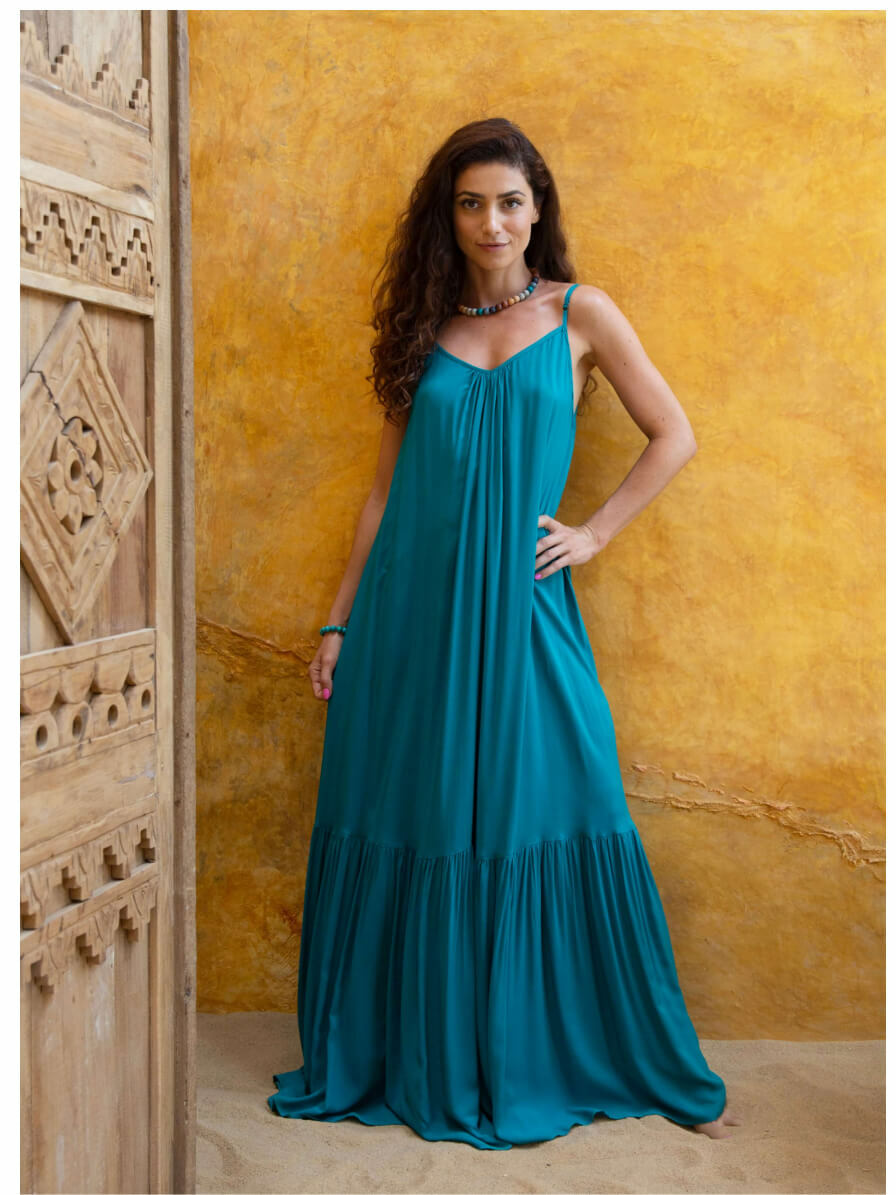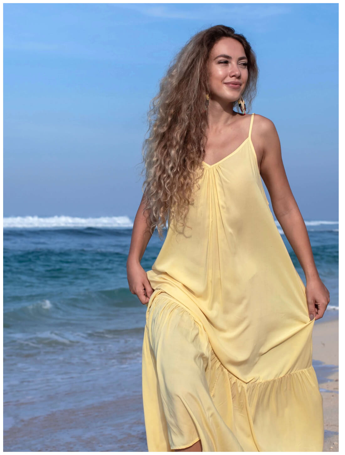 Top customers' reviews of this dress - «Beautiful, delicate and very slimming!» and «Got so many compliments when I wore it!». You can't wait to walk in it along the sea shore at the golden hour. Do not be afraid to wet the hem: the dress dries in minutes As our customer wrote, "It's playful and the sea will love it"