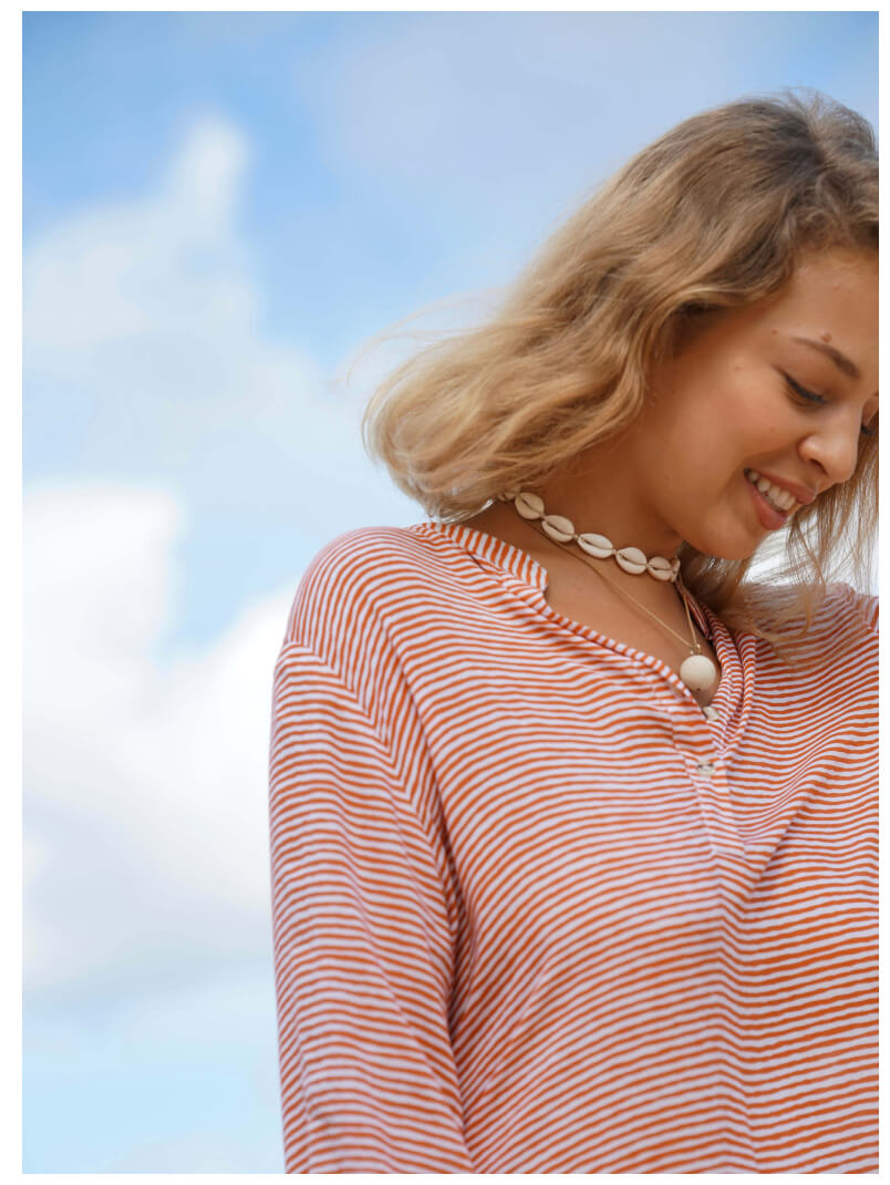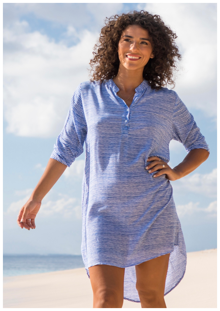 White-blue stripes is one the most popular nautical prints. Do you remember striped sailor's vest? But it's extremally hot wearing them under the scorching sun. But our tunic of weightless and cooling viscose will make feel free and comfortable. Nothing will constrain your movements.