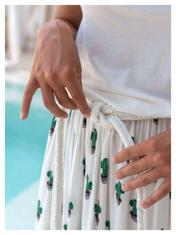 The cotton hand-made belt is hinting a little at the sailors' ropes, and quietly calling you to the coast... Where the rhythmic waves are. Where the salty splashes are. Where the wind is naughty, but gentle. Where the sun does not hide from people... Where you want to smile...