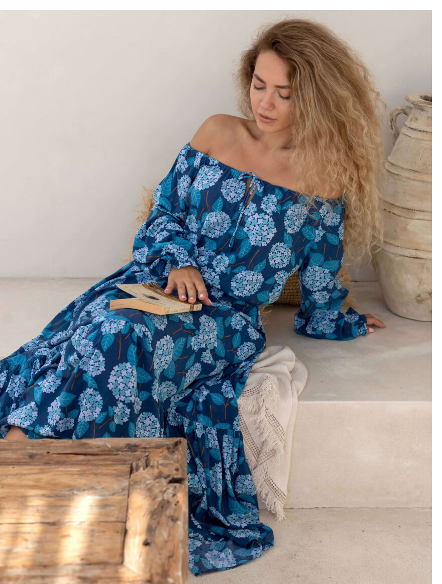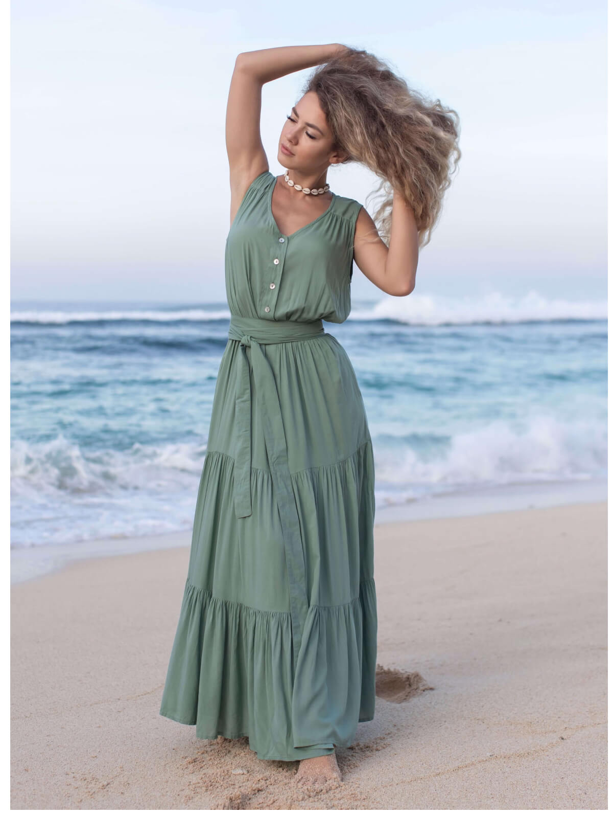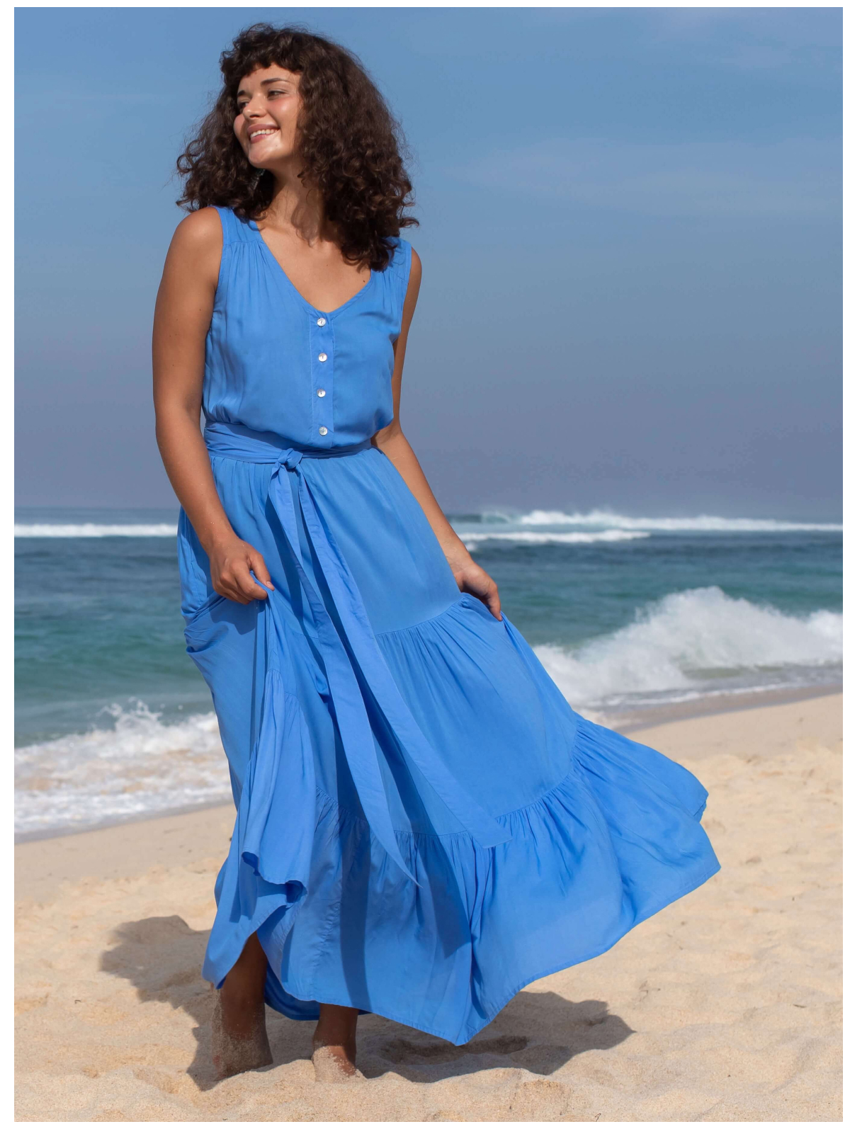 Une longue robe d'été en viscose fine, légère et respirante... Nos clients avouent qu'ils se sentent divinement beaux en la portant.