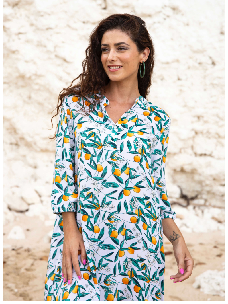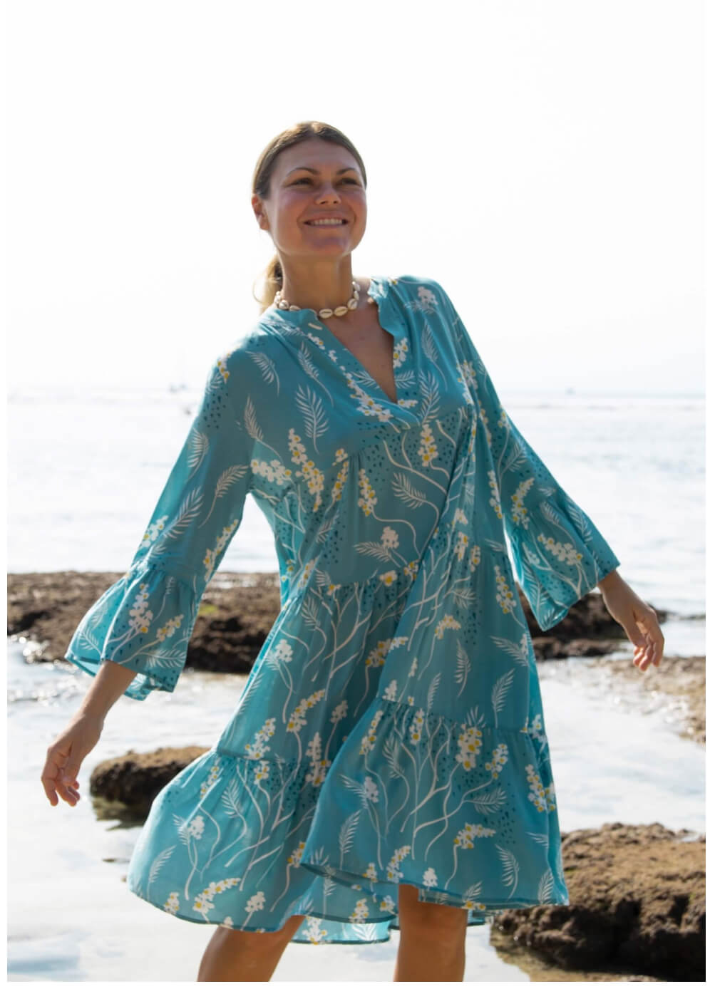 Le tissu est si délicat, fin et léger qu'il ne colle pas au corps. Les manches assez longues protègent du soleil tout en procurant une sensation de fraîcheur, même par temps chaud. Tous nos clients sont d'accord: cette robe est tellement confortable que vous ne voudrez plus l'enlever.